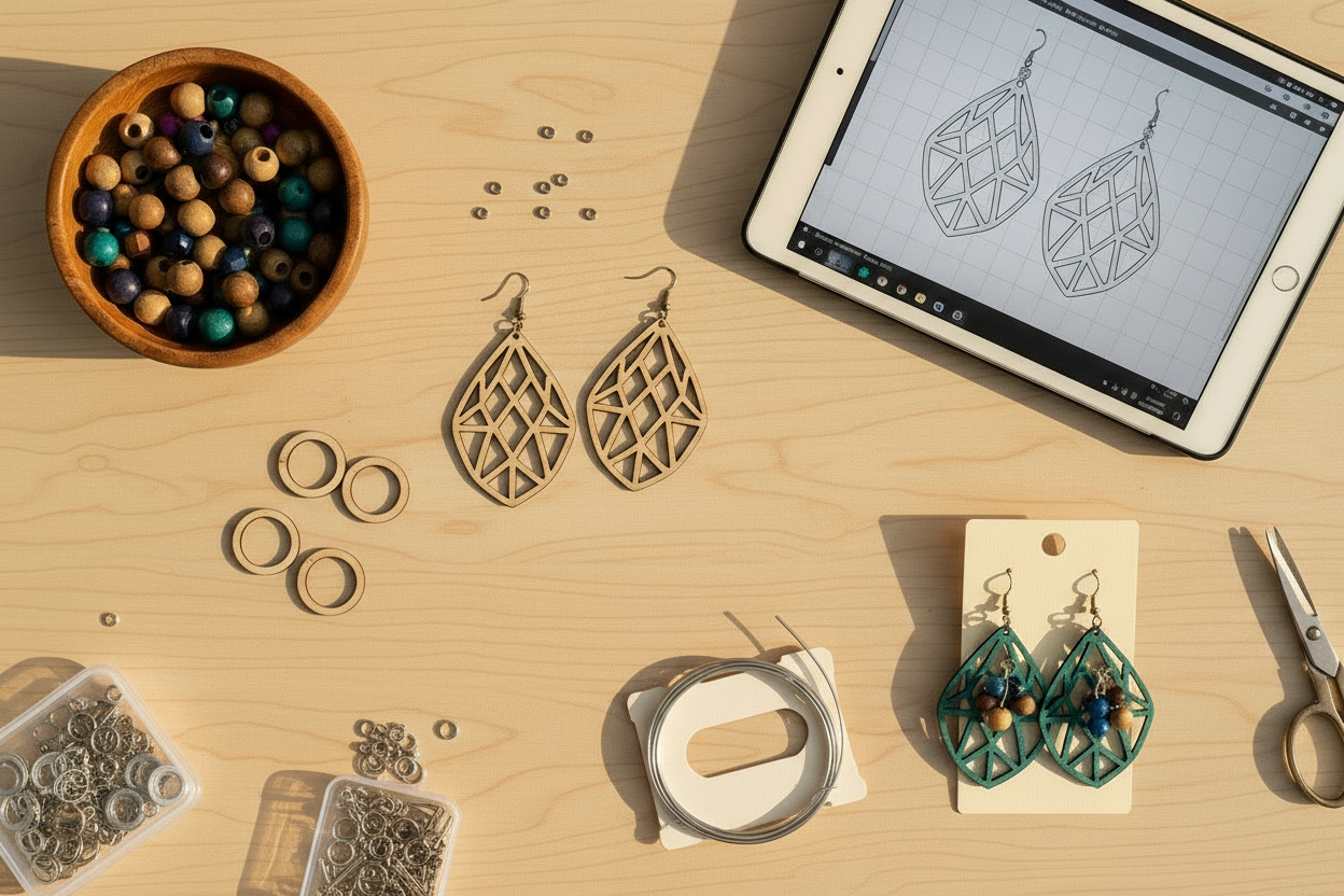 Browse our collection of designer kits, earring blanks, jewelry templates, laser-cut files, and authentic African fabrics — everything you need to design bold, beautiful pieces. Each product is handpicked and tested in our own studio to help you create with confidence and style.