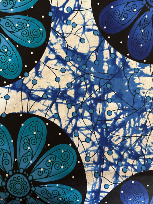 Blue/Teal/White/Black Ankara/African Print fabric by the yard-3 yard Max
