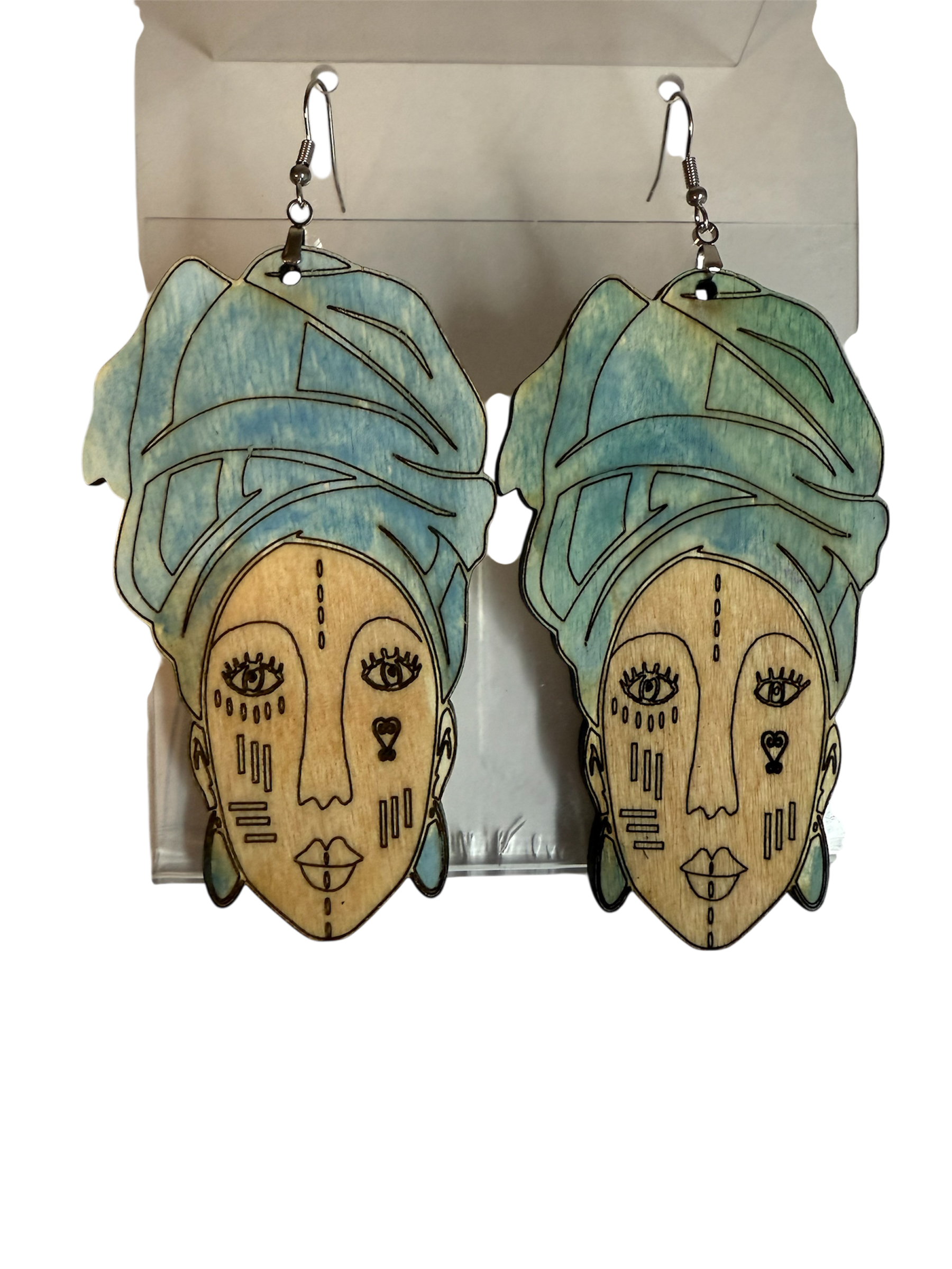 African Lady Face earrings with markings Earring Blanks-5 pairs