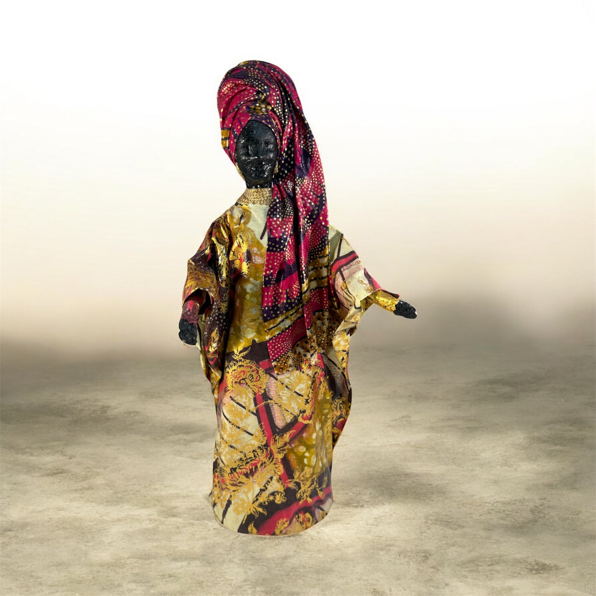 Designed and created by Sherry Shine during the early Sherika Originals era, this handmade statue celebrates the beauty, strength, and artistry of Black womanhood. Each piece is uniquely crafted, reflecting Sherry’s signature style from the 1990s and early 2000s — a time when she sold art at markets, expos, and community fairs across California.